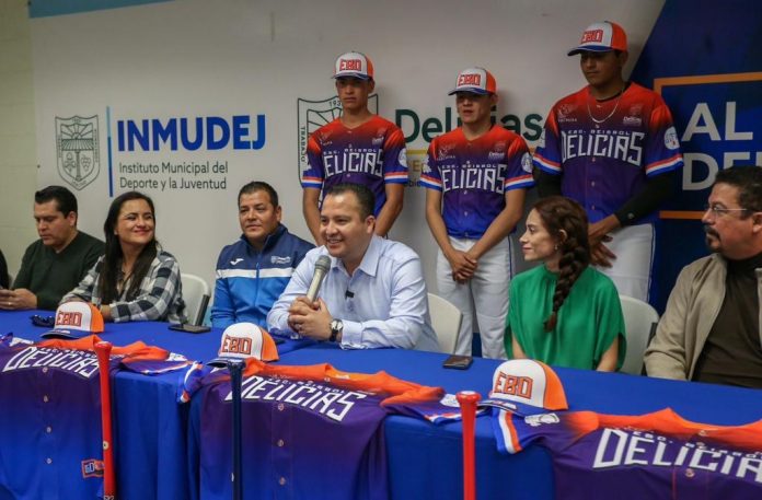 Delicias.- El alcalde de Delicias, Jesús Valenciano, encabezó la entrega de uniformes a los jóvenes integrantes del equipo Escuela de Béisbol Delicias, quienes participarán en el próximo Campeonato Regional de la Tercera Zona.