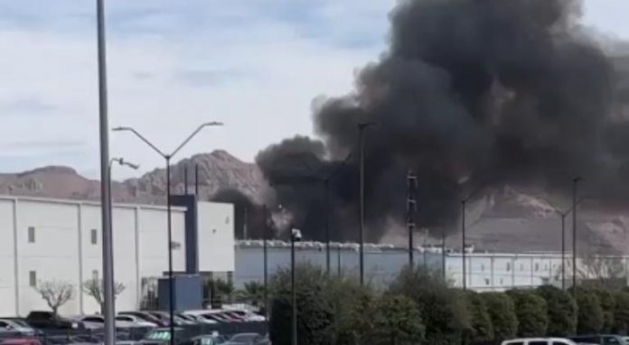En las imágenes se puede ver una inmensa columna de humo negro y llamas que salen de la empresa.