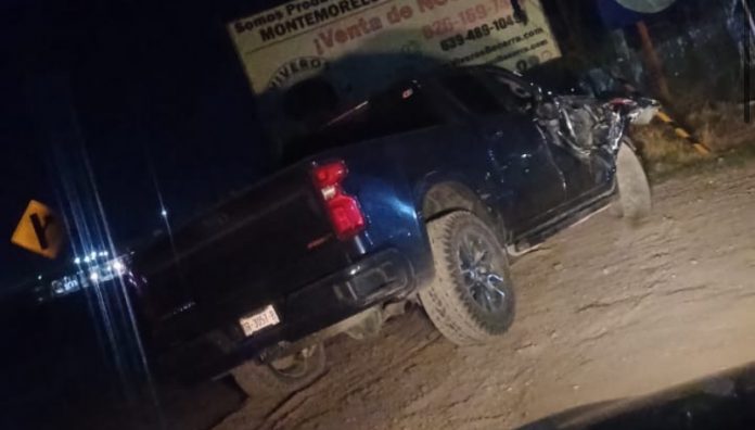 Se trata de una camioneta de la marca Chevrolet, tipo Cheyenne, color azul, cabina y media, con matrículas del estado de Chihuahua DR-3057-B, la cual presentaba daños en su parte lateral frontal derecha y, según la cinemática, participó en un choque sobre la cinta asfáltica, precipitándose a la orilla, donde fue abandonada, pues no había personas.