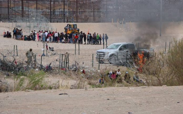 Además, por donde los migrantes hacen huecos con ropa enredada entre los alambres de púas, también los militares estadounidenses están prendiendo fuego para volver a colocar más alambre para impedir el cruce.