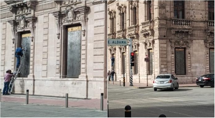 Por tal motivo, se decidió esta tarde instalar protecciones en las ventanas de Palacio de Gobierno, en años anteriores, los cristales fueron dañados e inclusive se provocaron incendios.