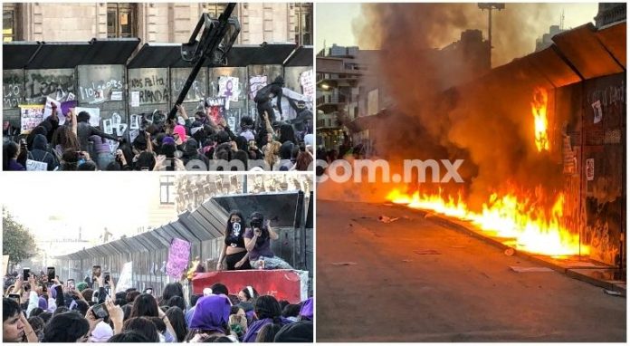 En la lucha contra la barrera de Palacio de Gobierno, mujeres arrancaron bancas, rendijas metálicas, señalamientos viales, semáforos peatonales, botes de basura, cadenas y hasta las letras de Chihuahua que adornaban una plaza cercana.