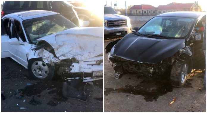 Chihuahua.- Conductor se metió en sentido contrario y provocó un choque de frente contra una joven guiadora, dejando un saldo de cinco heridos -tres jóvenes y dos adultos- en el corredor comercial de Cuauhtémoc.