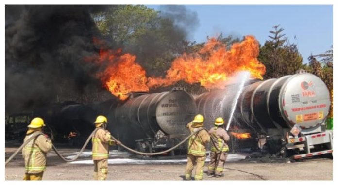 Personal de Protección Civil atendió el incendio provocado por dos pipas de doble remolque, desalojaron a pobladores de sus viviendas por su seguridad