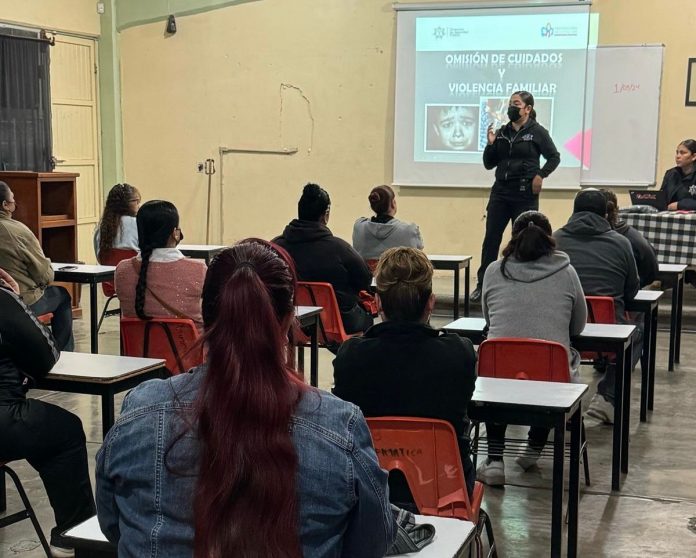 Delicias.- Atendiendo a una solicitud de los directivos de la Secundaria Federal 96 ‘Vencedores del Desierto’, agentes de Prevención Delictiva de la dirección de Seguridad Pública Municipal de Delicias, están llevando a cabo pláticas preventivas para padres de familia sobre los temas de Omisión de Cuidados y Violencia Familiar.