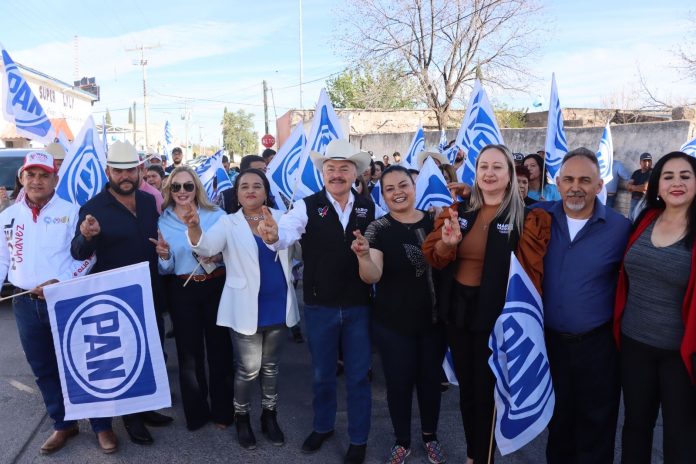 En la gira estuvo acompañado por Noel Chávez, candidato a diputado federal por el distrito 9, así como Margarita Alvidrez, Secretaria General del PAN Estatal; Kenia Durán, Secretaria General del PRI Estatal y los dirigentes municipales del PAN y del PRI, Erick Prieto y Jesús José Helo respectivamente.