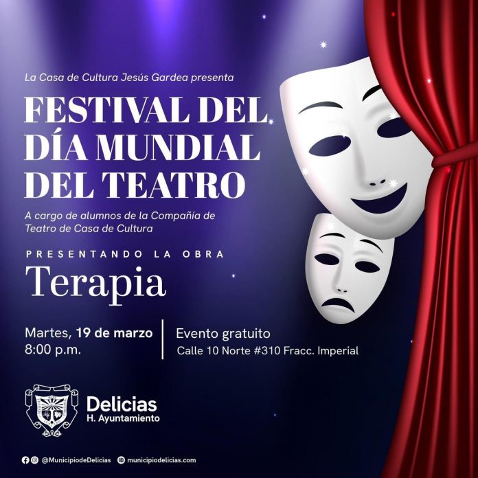 Delicias.- Con motivo de conmemorar el Día Internacional del Teatro, el próximo 19 de marzo se llevará a cabo el Festival del Día Mundial del Teatro en la Casa de Cultura Jesús Gardea.