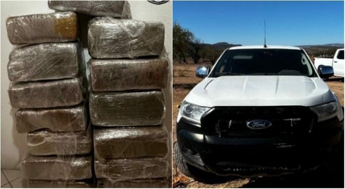 Chihuahua.- Elementos de la Fiscalía localizaron y recuperaron un total de 111 kilos de marihuana que fueron abandonados en el kilómetro 52 de la carretera de Balleza, se encontraba en una pick up Ranger con reporte de robo.