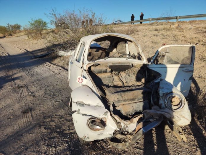 Ahí, se había suscitado un accidente vial tipo volcadura, en el lugar se localizaba un vehículo de la Marca: Volkswagen, Línea: SEDAN, Modelo: 1985, con Placas EJV1264, de color blanco.