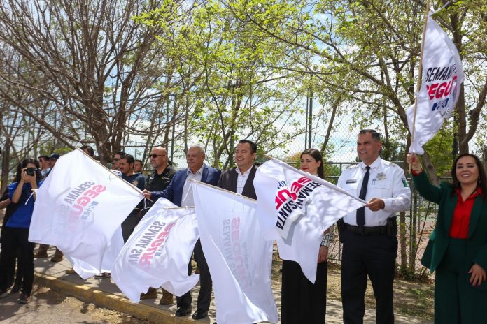 El evento tuvo lugar en el acceso al Parque Fundadores y la carretera federal, y contó con la asistencia de autoridades de los tres niveles de gobierno, así como diversas corporaciones de seguridad y rescate. Además, se destacó el sobrevuelo de un helicóptero de la SSPE, que reforzó el compromiso de vigilancia en la zona.