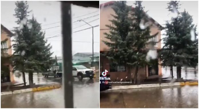 Habitantes de Gómez Farías, municipio en el noroeste del estado, grabaron video de la nevada, difundido por las redes de ‘Chihuahua Tiempo Severo’, cuenta especializada en el clima.