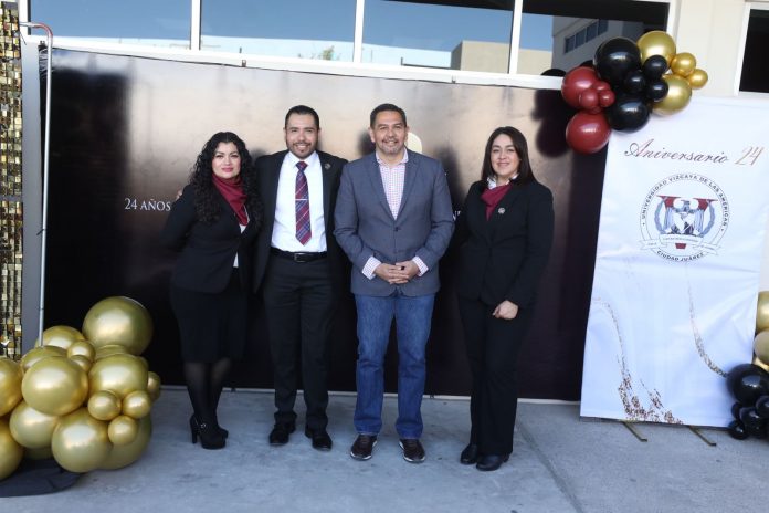 Ciudad Juárez.- El Presidente Municipal participó en la ceremonia del 24 aniversario de la Universidad Vizcaya de las Américas, campus Ciudad Juárez.