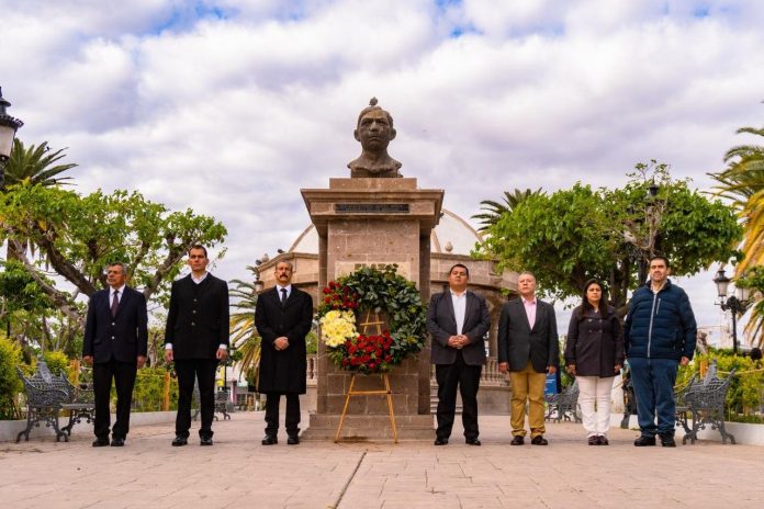 Meoqui.- Este 21 de marzo se realizó la conmemoración del 218 aniversario del natalicio de Benito Juárez, donde se recordó el paso del Benemérito de las Américas por el municipio de Meoqui, así como el decreto y la elevación del pueblo de San Pablo a Villa Pedro Meoqui en el año de 1866.