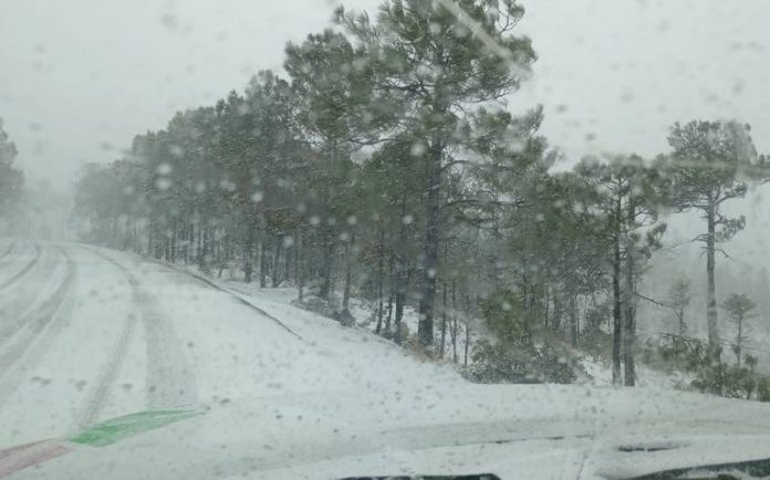 Chihuahua.- La Coordinación Estatal de Protección Civil de Chihuahua informó sobre los efectos del frente frío número 42 y la Octava Tormenta Invernal que se presenta en esta primavera, que provocó caída de nieve en la localidad de Huajumar, en el municipio de Ocampo, Chihuahua, donde se registró una temperatura mínima de -1 grado, con sensación térmica de -6 grados centígrados. También se reportó caída de nieve en los municipios de Maguarichi, Madera y Bocoyna.