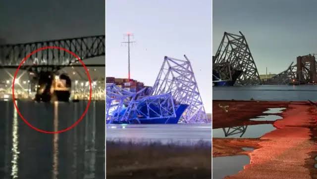 Un barco de grandes dimensiones se estrelló contra el puente alrededor de las 01:30 horas y se incendió antes de hundirse, además de provocar que varios vehículos cayeran al río Patapsco, según mostró un video publicado en X, antes Twitter.