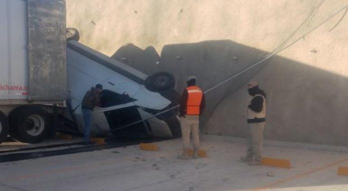 Chihuahua.- El joven conductor de una camioneta perdió el control y volcó hacia el interior del estacionamiento del Centro de Distribución de Walmart, ubicado a la altura del kilómetro 27 + 500 de la carretera a Juárez.