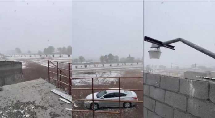 Y uno de los videos más recientes de la caída de nieve, es la nevada que se está presentando en La Junta, Chihuahua, la cuál ya comenzó a juntarse y “pintar” todo el suelo y árboles de blanco.