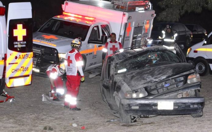 Chihuahua.- En un lamentable incidente registrado en la colonia 20 Aniversario, una fuerte volcadura dejó cuantiosos daños materiales y una pareja con lesiones de consideración. Según testigos, una llanta se salió de su eje, provocando que una camioneta Explorer de modelo atrasado de la línea Ford perdiera el control del volante y volcara, terminando sobre terracería en la vialidad Los Nogales.