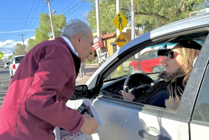 Meoqui.- En su pasada visita a la región Centro Sur, el candidato a diputado Federal por el Quinto Distrito recorrió las calles del Municipio de Meoqui, donde los ciudadanos manifestaron su decisión de apoyar el proyecto de la 4T que encabeza la doctora Claudia Sheinbaum.