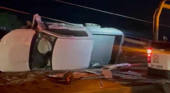 Chihuahua.- Durante la noche del miércoles, una volcadura se registró en el cruce de las avenidas Colegio Militar y Homero, al norte de la ciudad.