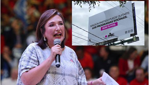 Morena y PT denunciaron a Xóchitl Gálvez por la publicación de imágenes de supuestos espectaculares en los que utilizó el logo y colores del INE, como una propuesta a una campaña para prevenir mal uso de programas sociales.
