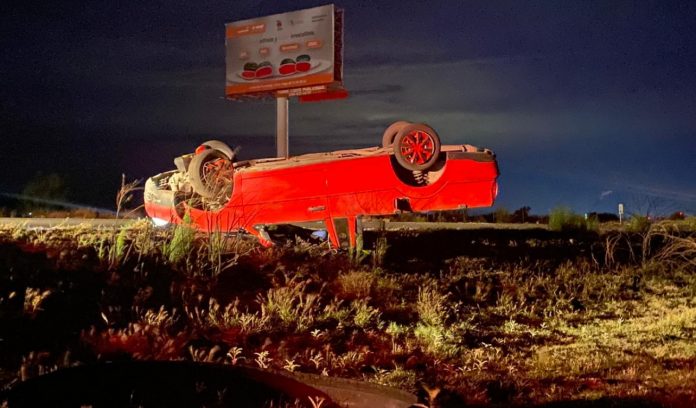 Delicias.- La noche del domingo se presentó la volcadura de una pick up, en la carretera Federal a la altura de la del kilómetro 144, en el tramo que comprende la colonia terrazas y el puente los cuates.