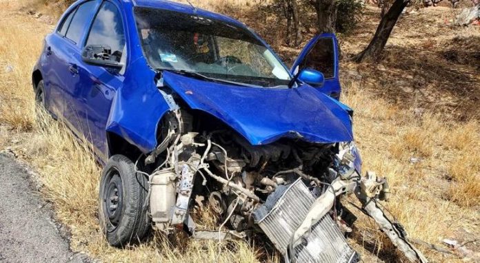 Testigos de los hechos refirieron que una vaca se atravesó la carretera y obligó al conductor de una pick up a girar, sacando de la carretera al tripulante de un Nissan, March, de color azul.