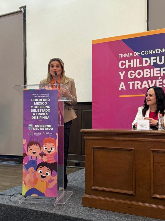Delicias.- En un esfuerzo conjunto por promover el bienestar y desarrollo integral de la niñez, la presidenta del DIF en Delicias, Alma Limas de Valenciano, estuvo presente en la firma del convenio encabezado por la Gobernadora Maru Campos, la asociación ChildFound México y el Sistema Integral de Protección a Niñas, Niños y Adolescentes (Sippina), en el que se unieron en este compromiso, el cual busca impactar de manera positiva en la vida de los niños.