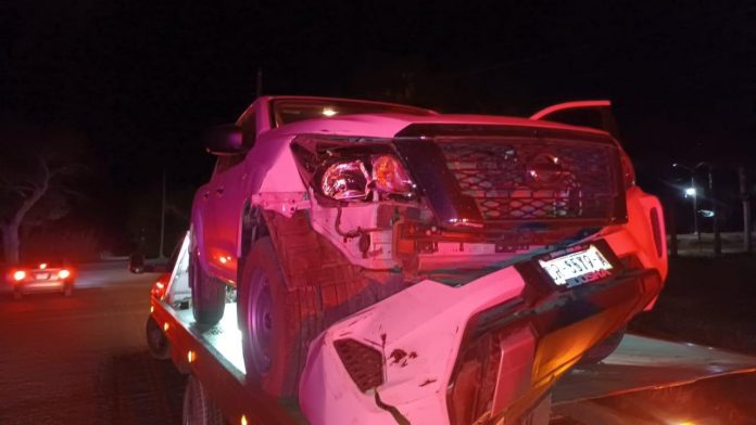 Se trata de una camioneta de la marca Nissan, tipo Frontier, color blanco, con matrículas DR-3579-A, la cual tras impactar con el poste cayó tambien a un canal de riego, aledaño al camino y a un predio agricola, de dónde el conductor, un masculino de aproximados 50 años salió por su propio pie.