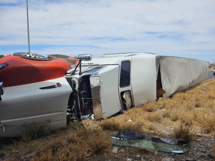 Delicias.- Se registró una volcadura la tarde de este sábado bajo el puente del Acceso Norte.