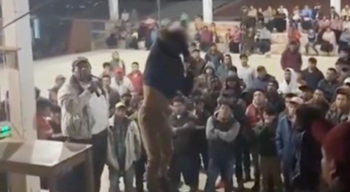 Chicos.- A través de redes sociales se difundió un video en el que pobladores colgaron a un adolescente de un brazo y lo exhibieron, luego de que fuera sorprendido robando en una casa.