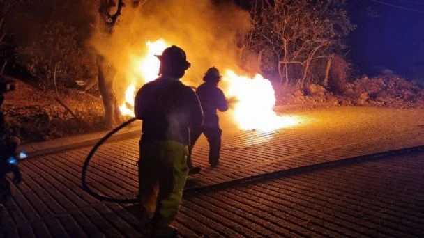 Corporaciones de seguridad acordonaron la escena, luego de que bomberos sofocaran el fuego.