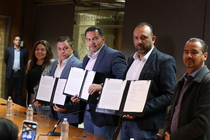 Ciudad Juárez.- Este día el Gobierno Municipal firmó un convenio de colaboración con el Colegio de Bachilleres del Estado de Chihuahua (COBACH), con el propósito de ejecutar una obra de impermeabilización en ocho planteles localizados en esta frontera.