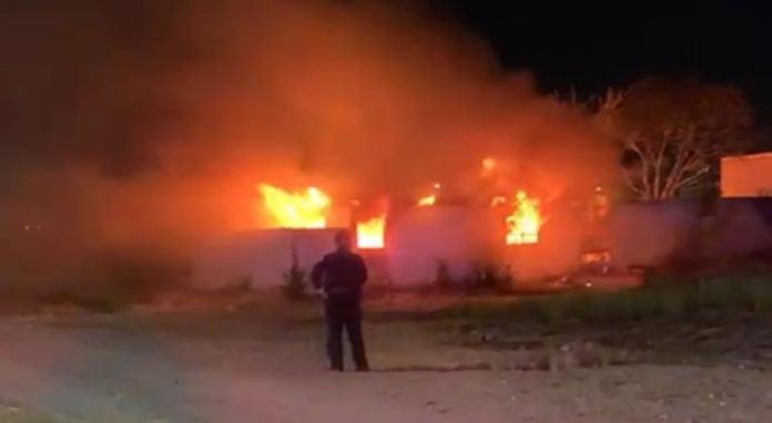 Policías municipales arribaron al lugar y encontraron la casa completamente en llamas. Acordonaron la zona y abanderaron el tráfico sobre la Vialidad Sacramento para permitir el acceso de bomberos.