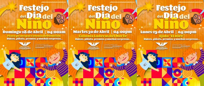 La celebración tendrá lugar en tres ubicaciones distintas, iniciando el domingo 28 de abril en la colonia Revolución a las 4:00 pm en la plaza principal. Para luego realizar otro evento el 29 de abril en la colonia Ejido el 10 y terminar el martes 30 de abril en la Colonia Laderas del Norte, ambos también en las respectivas plazas principales. Todos los festejos contarán con una amplia gama de actividades divertidas, incluyendo juegos, pintacaritas, dulces, premios y mucho cosas más.