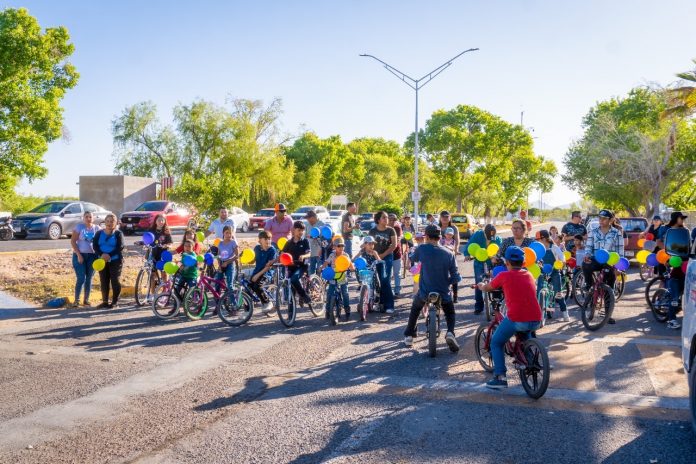 Meoqui.- Entre sorpresas y ambiente familiar, el Gobierno Municipal de Meoqui a través del DIF Municipal, realizó una bicicleteada, cerrando con esto la serie de actividades para conmemorar el Día del Niño y la Niña, contando con cerca de 100 niños, los cuales recorrieron las principales calles de la cabecera municipal.