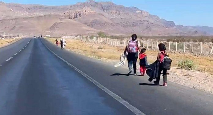 Delicias.- Decenas de personas en condición de movilidad fueron vistos caminando sobre la carretera de Delicias a Chihuahua.