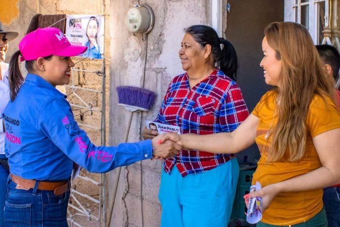 Miriam Soto, candidata a la Presidencia Municipal de Meoqui, visitó la comunidad de la Felipe Ángeles, del seccional de Guadalupe Victoria, donde tuvo la oportunidad de recordar las obras y acciones realizadas, mismas que fueron reconocidas por parte de los colonos.