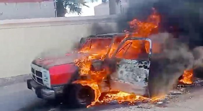 Chihuahua.- Una pick-up Dodge Ram de color rojo, modelo atrasado, sufrió una explosión y posterior incendio en el cruce de las calles Avenida Desarrollo e Imperio, en la colonia Lomas de Montecarlo II, al norte de la ciudad de Chihuahua.