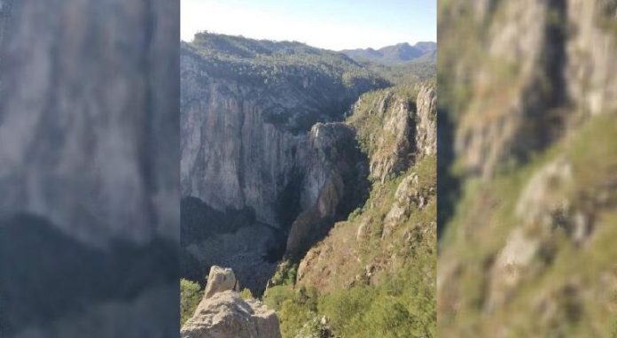 Fotografía sobre la Cascada de Basaseachi que circula en redes sociales desde el fin de semana muestra la falta de agua que suele verse caer dede lo alto de los cerros en del municipio de Ocampo.