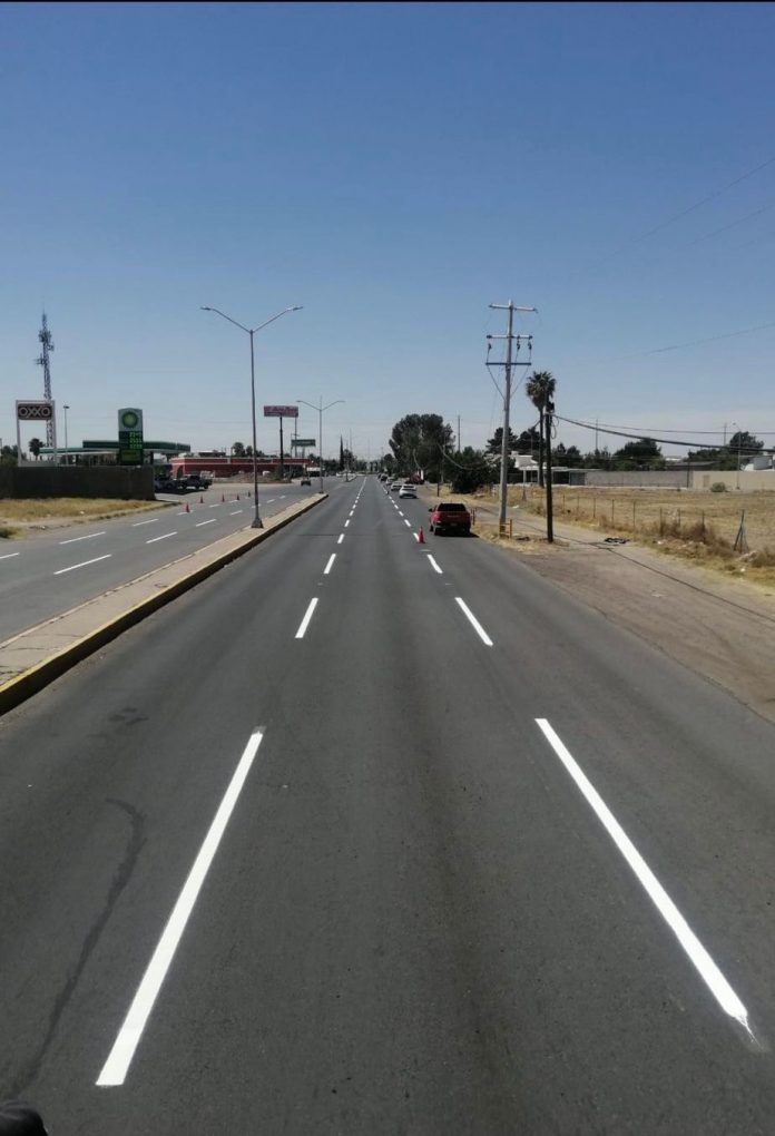 Con la finalidad de brindar mejor señalamiento en las vialidades, para evitar accidentes viales, la coordinación de vialidad de la mano con obras publicas continúan realizando trabajos de pintado en vialidades que se han reparado y en las que la ciudadanía reporta la falta de señalamiento.
