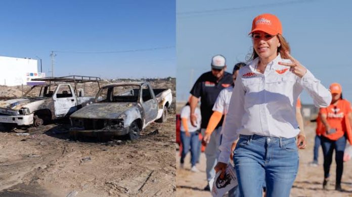 Sonora.- Desconocidos ingresaron a propiedades de la familia de la candidata de Movimiento Ciudadano al distrito I federal, Myriam Hernández, y de miembros de su equipo de campaña, en la ciudad fronteriza de San Luis Río Colorado, e incendiaron dos vehículos tipo sedan, así como una equipo de maquinaria para trabajo de campo.