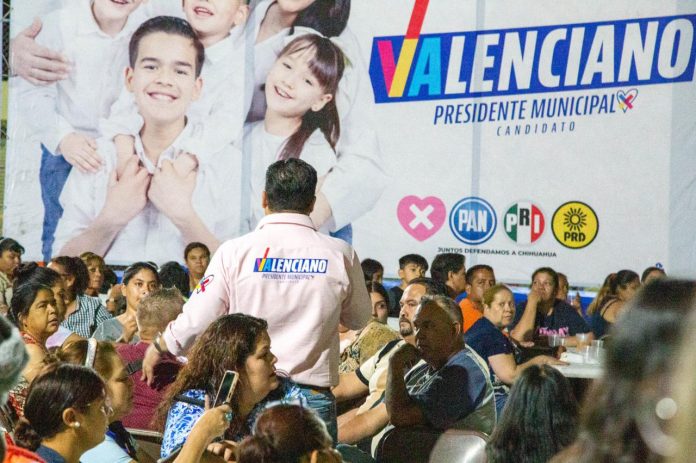 El candidato a la alcaldía, Jesús Valenciano, gestionará un segundo turno y reactivar el programa de horario extendido en la primaria José Reyes Baeza. Este anuncio se realizó ante los vecinos del fraccionamiento Las Torres durante una reunión con los abanderados de la coalición Juntos Defendamos a Chihuahua.