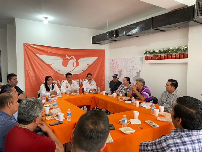 Yaki Villalba, candidata para diputada por el 19 Distrito de Movimiento Ciudadano, tuvo una reunió con los comerciantes y representantes locatarios de la Calle Tercera en el centro de Delicias.