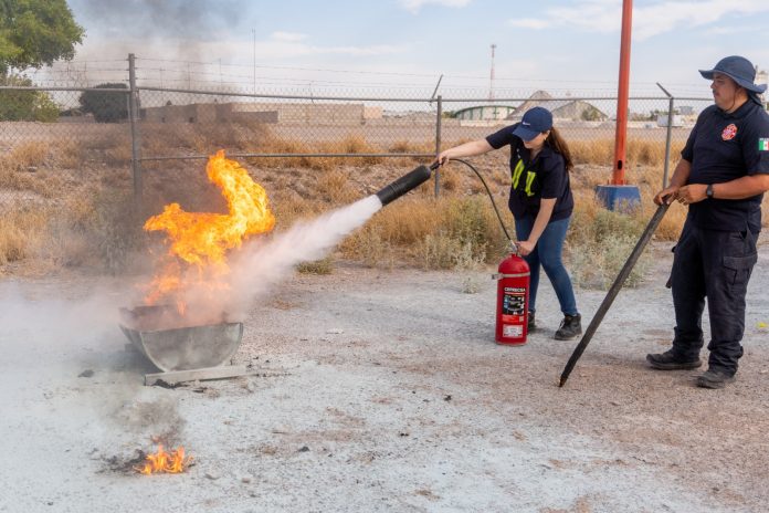 Meoqui.- La Coordinación de Protección Civil y Bomberos de Meoqui, capacitó a empleados de diversas empresas del municipio en temas como manejo de incendios, simulacros de evacuación, búsqueda y rescate, primeros auxilios y rutas de evacuación, con el objetivo de dar a conocer los protocolos correspondientes.