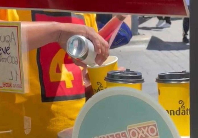 Chihuahua.- Durante el cierre de campaña de la candidata a la presidencia de la República por Morena, Claudia Sheinbaum, se descubrió que se estaba vendiendo cerveza en vasos de café Andatti donde se infringe las regulaciones de horario para la venta y consumo de bebidas alcohólicas.