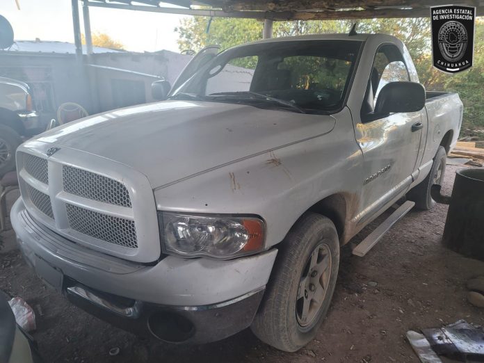 Elementos de la Agencia Estatal de Investigación, adscritos a la Fiscalía de Distrito Zona Occidente, aseguraron un vehículo Ram, tipo pick up, modelo 2004, color blanco, con placas de circulación del estado de Chihuahua,el cual contaba con reporte de robo.