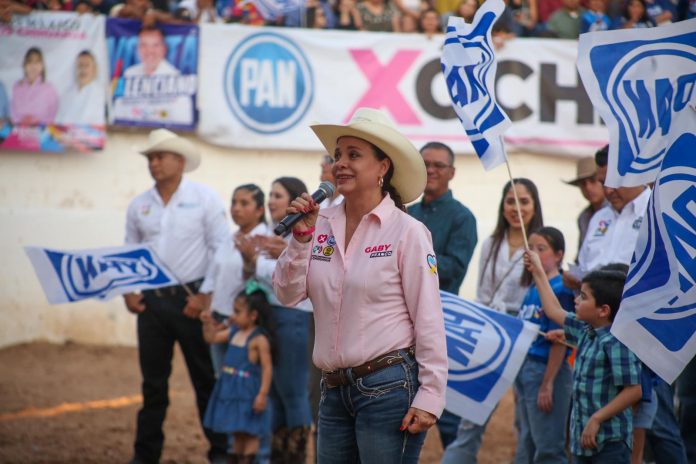 Durante su discurso, Gaby Franco también hizo un llamado a los votantes para que el próximo 2 de junio apoyen a los candidatos de la coalición PAN, PRI y PRD. “Les pido que este 2 de junio voten por los candidatos del PAN, PRI y PRD, para que en Delicias continúen los buenos gobiernos,” exhortó, destacando la importancia de mantener la continuidad y calidad en la administración pública del municipio.