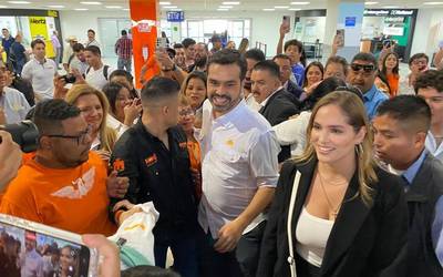 Asimismo, otros candidatos del ‘movimiento naranja’, así como aproximadamente sesenta jóvenes se dieron cita en el aeropuerto internacional General Roberto Fierro Villalobos para recibir al aspirante.