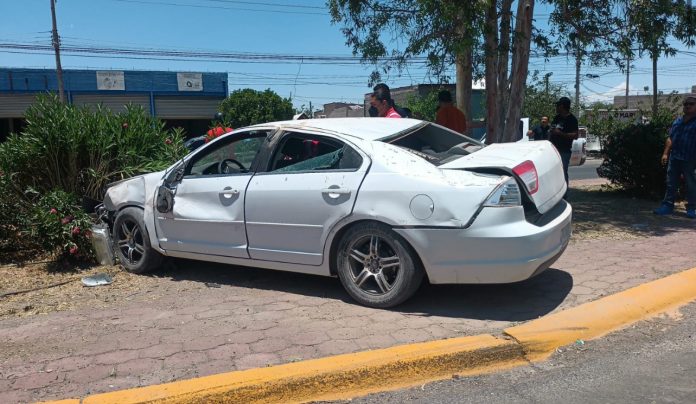 Delicias.- Una pareja resultó lesionada y su vehículo sufrió daños materiales totales luego de verse involucrados en un espectacular accidente vial en la Avenida Fernando Baeza.